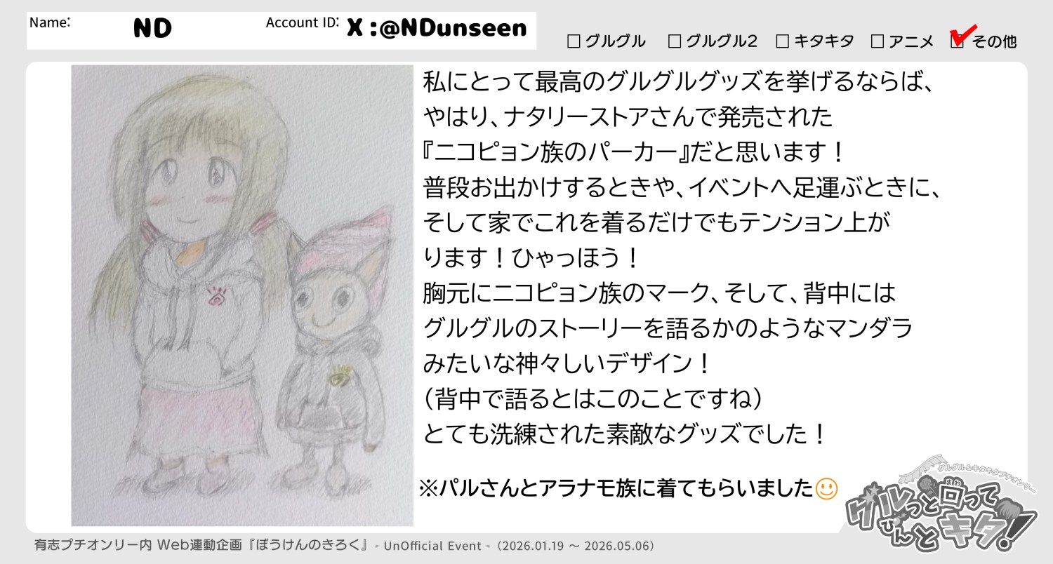 File No.12 【ND】 ぼうけんのきろく 2026.02.16 ND ※記入がなかったら、以下を削除 Xアカウント @NDunseen ぼうけんのきろく 投稿一覧 へ ※執筆者のみ投稿OK※ ぼうけんのきろくをコピーするコピーしました!