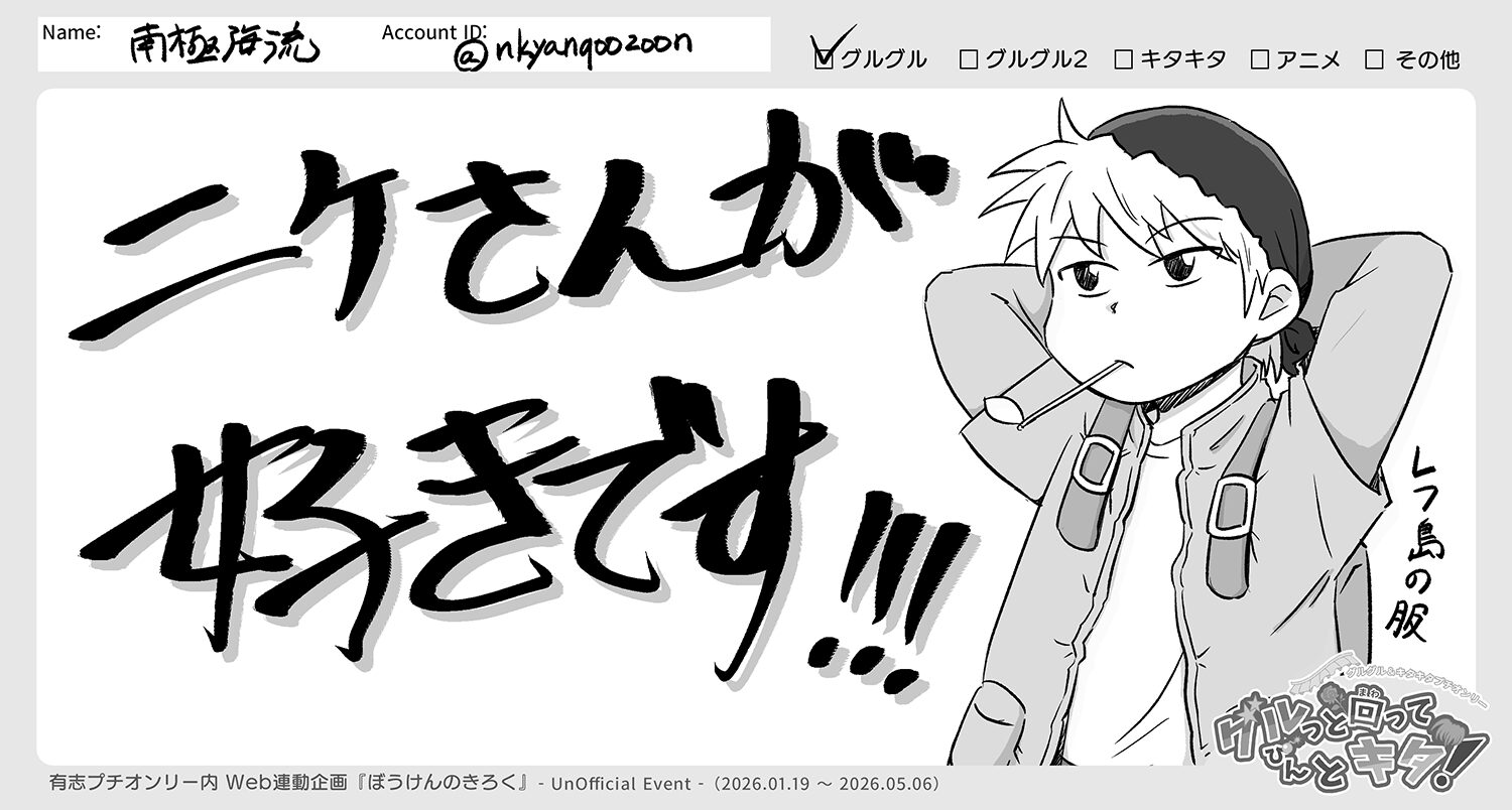 File No.5 【南極海流】 ぼうけんのきろく 2026.01.19 南極海流 ※記入がなかったら、以下を削除 Xアカウント @nkyanqoozoon ぼうけんのきろく 投稿一覧 へ ※執筆者のみ投稿OK※ ぼうけんのきろくをコピーするコピーしました!