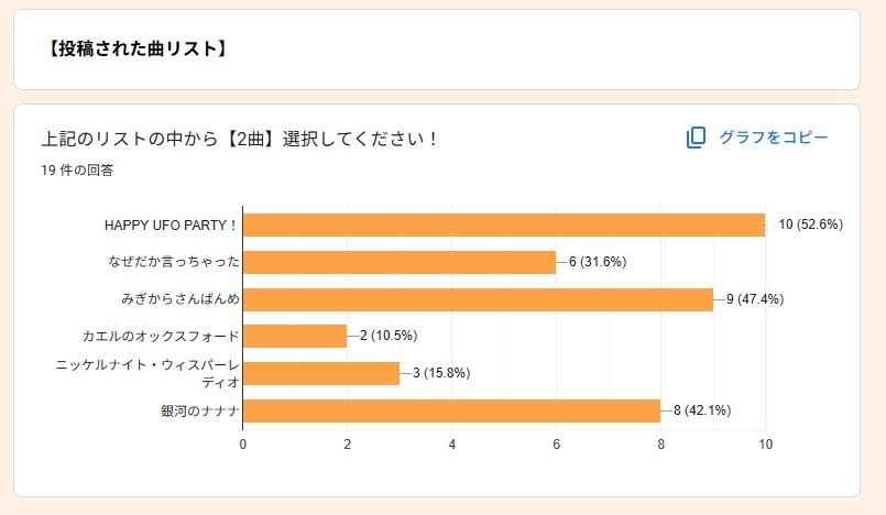 ※①で募集した曲の中から【2曲】選んで投票していただきます。